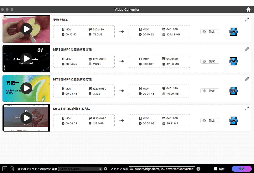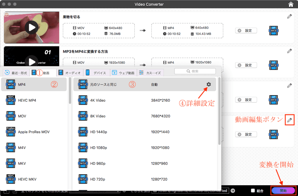 Cisdem VideoPawでYouTubeをダウンロードする場合、MP4、Webm、3GP、M4Aなどの形式が選択できますが、MOVやM4Vなどの形式がほしい場合は、やはり形式変換が必要です。この部分では、ダウンロードしたYouTube動画/曲をiTunesに最適な形式に変換する方法を紹介します。また、動画編集を行いたい場合も、このステップで簡単に編集できます。