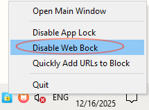 Cisdem AppCrypt provides a way for you to temporarily disable the WebBlock function, just click the padlock icon on the top menu bar and then you can choose to Disable Web Block. Please confirm that the WebBlock function is enabled.