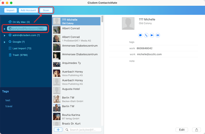 Highlight the target account on the left panel, click the Scan button to start scanning.