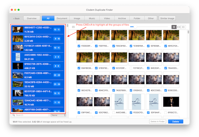 Cisdem auto selects all the duplicate files for deletion after the scan completes, you can directly click the Delete button to delete all the duplicates with one click after reviewing.