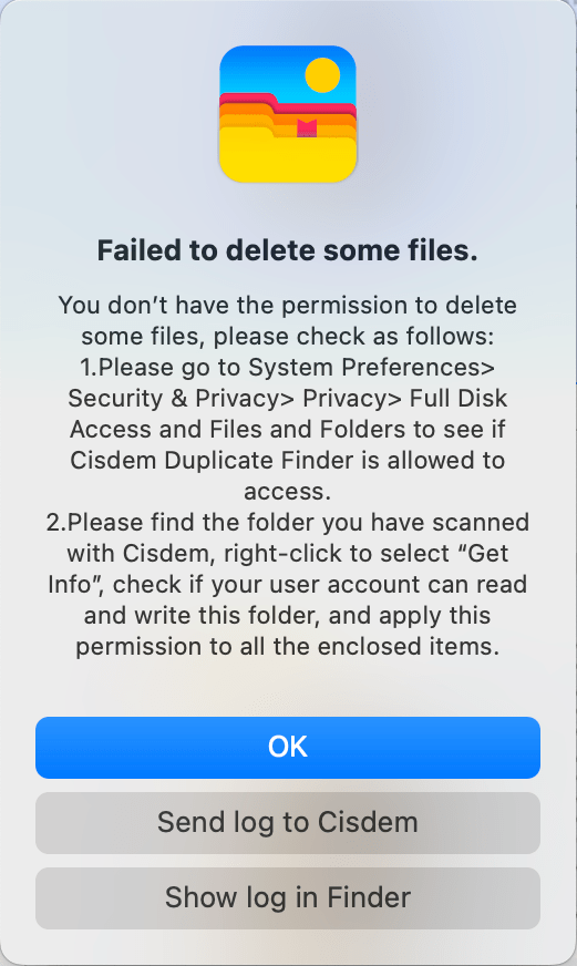 In some cases, users may get error messages when trying to delete duplicate files. Below, we will guide to you how to troubleshoot it by reviewing the log files of Cisdem Duplicate Finder.