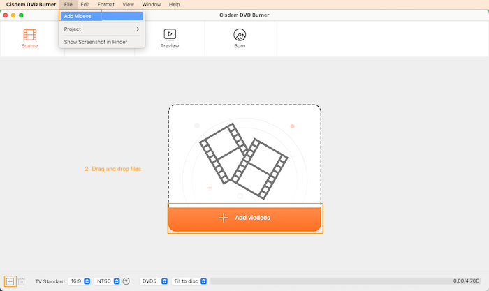 Cisdem DVD Burner supports 200+ video formats input, there are 4 ways to add video files: