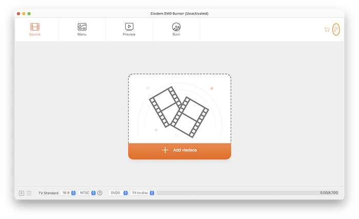 1. Go to Lauchpad or Applications folder, double click Cisdem DVD Burner to run the program, and then click the key icon at the right upper corner.