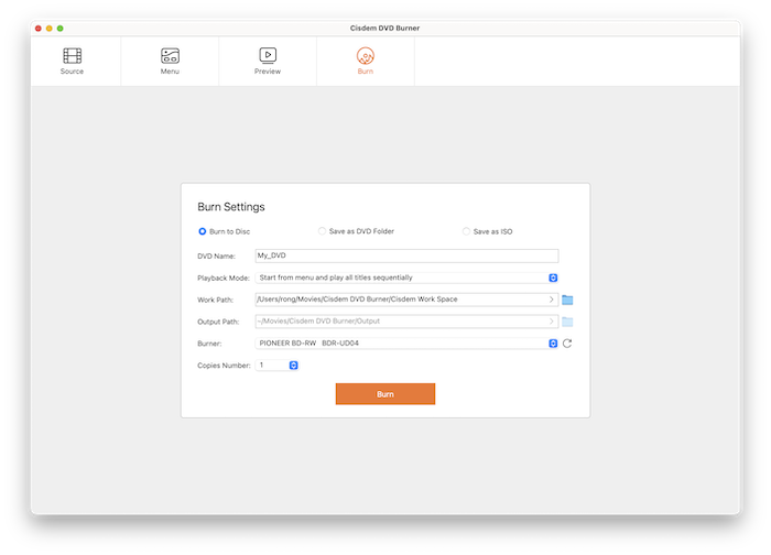 5. Burner: It displays the burners that Cisdem detects, and you can choose a proper burner before clicking the Burn button.