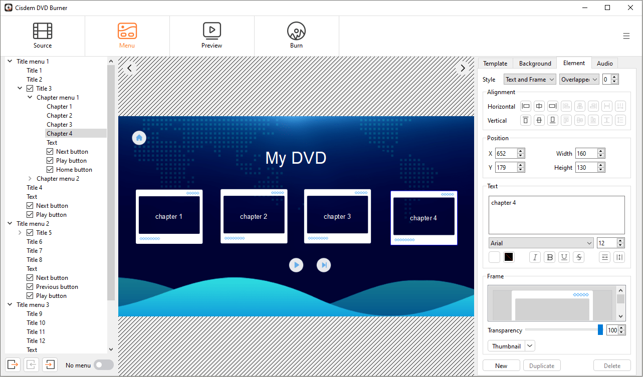 When burning videos to a DVD, a well-designed menu doesn’t just make your disc look professional, it also makes navigation easier for viewers. With Cisdem DVD Burner for Windows, you can create menus not only for DVD titles, but also for individual chapters. This guide will walk you through the steps to add and customize DVD Chapter menus on your PC.