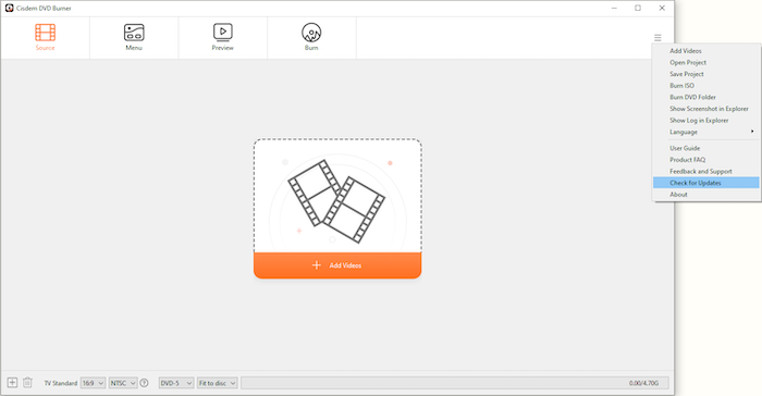 When you launch Cisdem DVD Burner, Cisdem will auto check for updates.