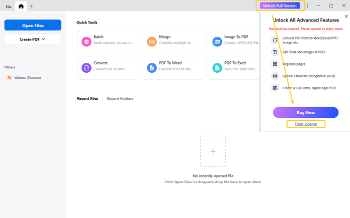 Cisdem will list the recently opened PDF files under Recent Files, also it will list the folder of those recently opend PDF files under Recent Folders.