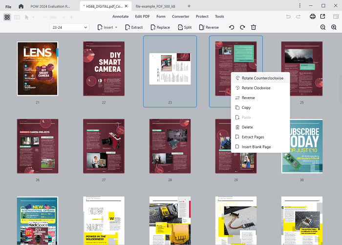 6. Rotate : Just highlight the pages that you want to rotate, click