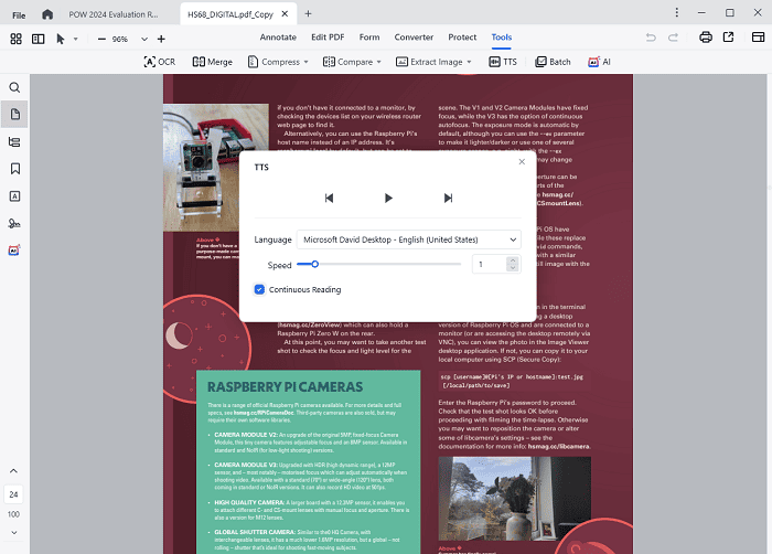 If you want to listen to a document instead of viewing, using TTS is especially helpful. Just click