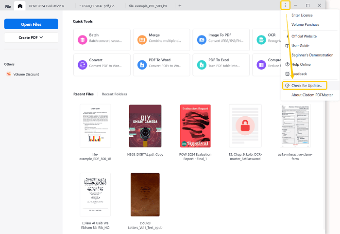 When you launch Cisdem PDFMaster, Cisdem will auto check for updates and prompts you to download the latest version package.