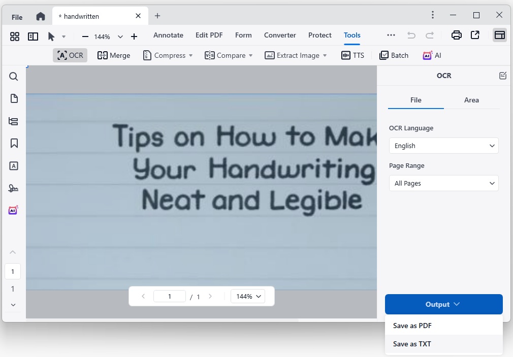 The advanced handwriting recognition and OCR technology in Cisdem PDFMaster can automatically recognize text in handwritten notes and extract text from them, users can effortlessly copy and paste the text. For higher efficiency, it comes with a batch mode that allows Windows and Mac users to convert multiple handwriting to text in one place. You can even specify the pages that you want to convert in the uploading list.