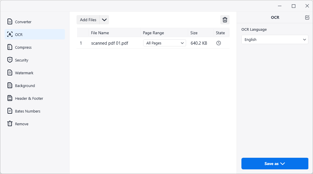- Then, you can select the page range you want to convert and choose the OCR language.
