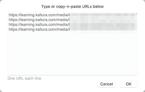 Cisdem VideoPaw is able to download multiple Kaltura videos at once. So you can add more video links to the software. Click the plus icon at lower left corner, then you can simply add all URLs to the box and click “OK” to parse all URLs simultaneously.
