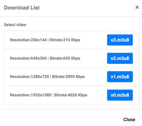 - If you choose MP4 format, the video will be downloaded in a new tab. If choose M3U8, you need to select the desired resolution.