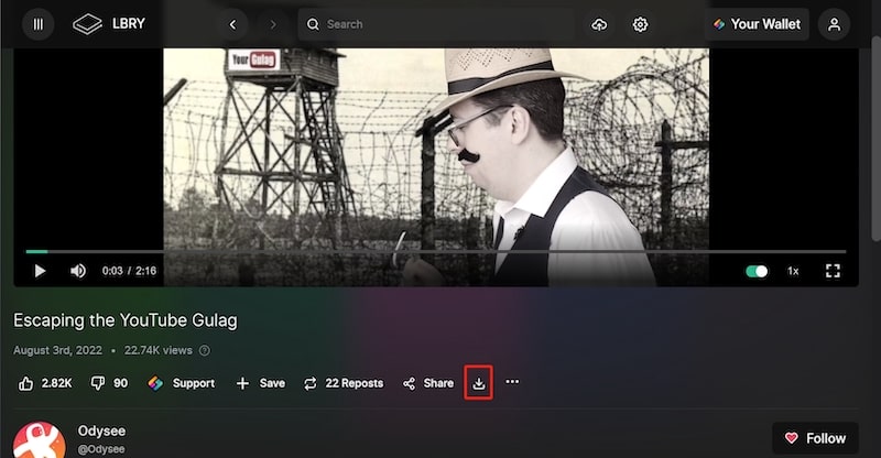 2. Find the Odysee video you want to download and copy its link. You can directly copy the link from the address bar.