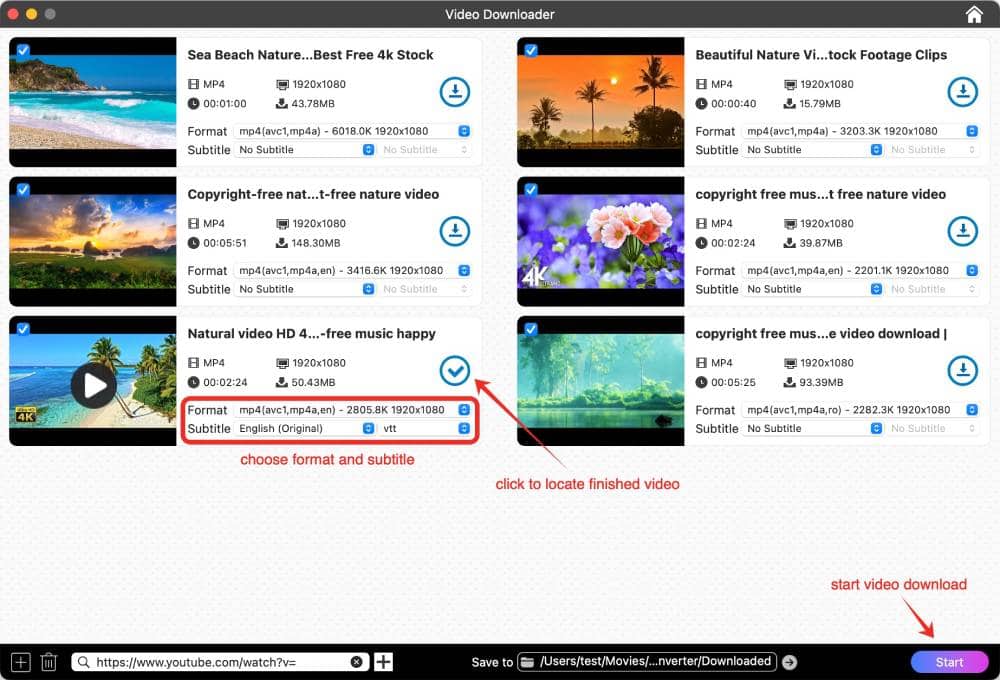6. Hit the “Start” to download videos with many links concurrently. Once done, click the blue checkmark in the circular progress bar to instantly locate your downloaded files.