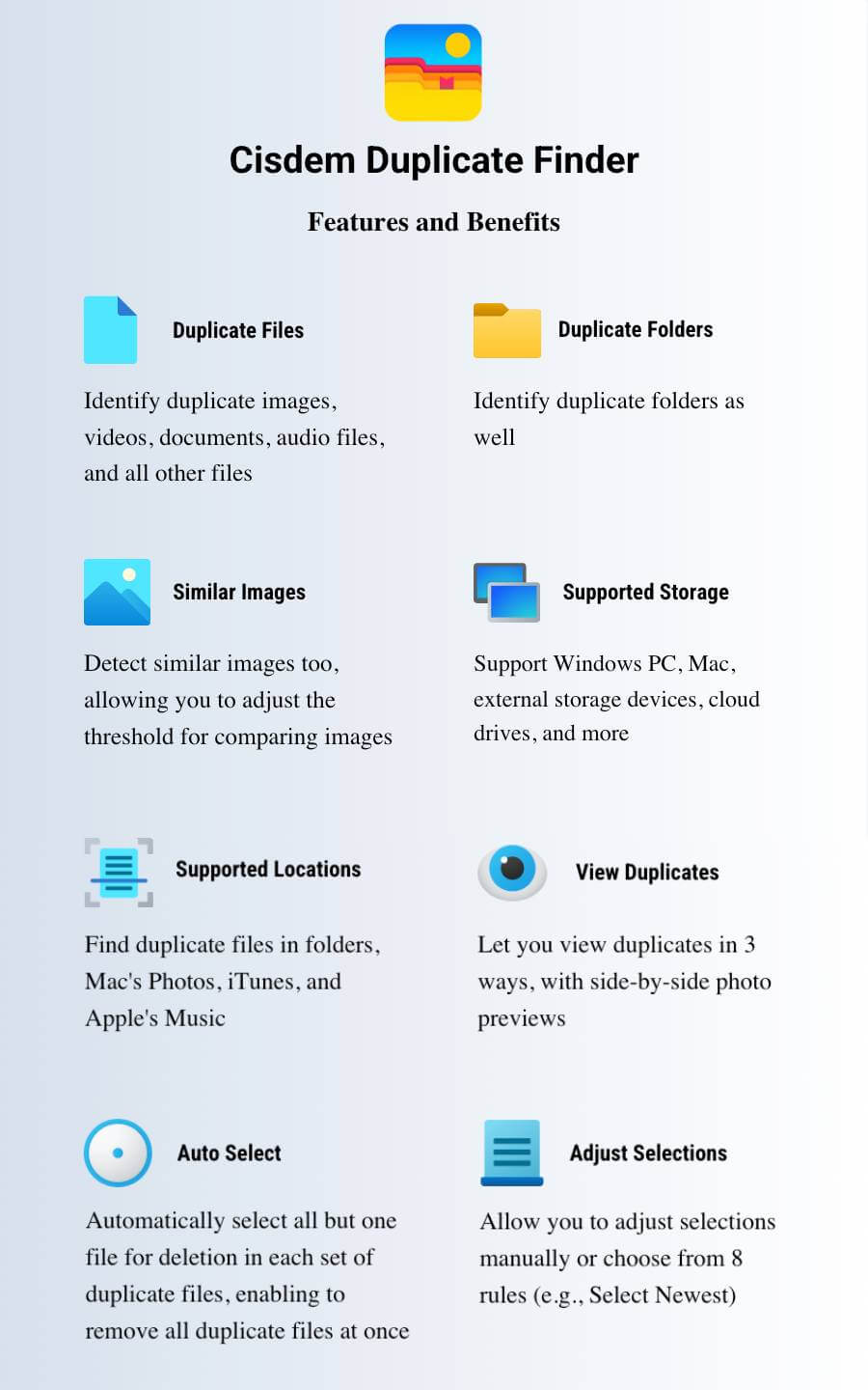 The easiest method to identify duplicate folders on a Windows PC or Mac is to use a duplicate folder finder app called Cisdem Duplicate Finder.