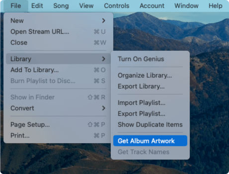- From the File menu, choose Library > Get Album Artwork to add artwork in bulk.