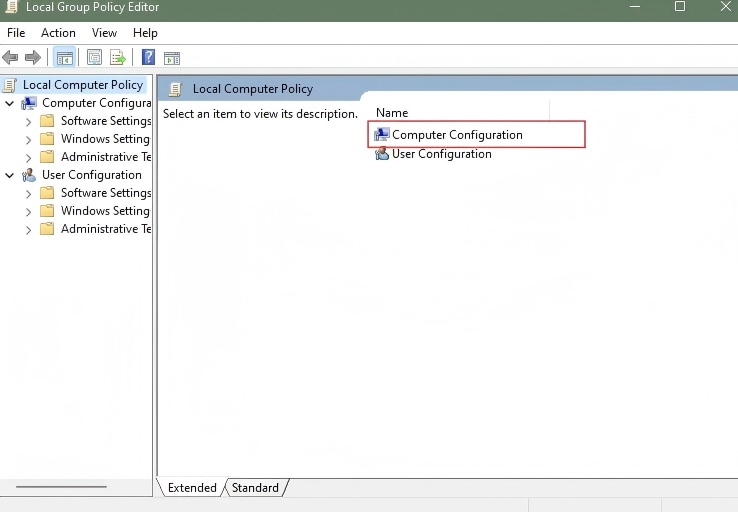 3. In the Local Group Policy Editor window, click Computer Configuration.