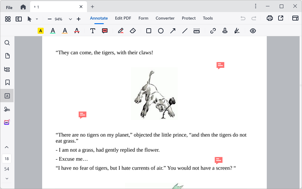 - Open the Annotation panel on the left side, all the comments, highlights and markups will be displayed orderly.