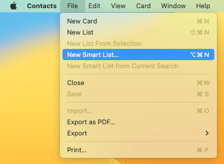1. Click New Smart List in the File menu.