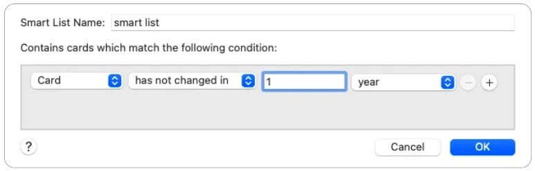 It has another feature called Smart List, which can be used to automatically filter potentially outdated contacts for your to update. Having this list in the sidebar also serves as a reminder to maintain your contacts.