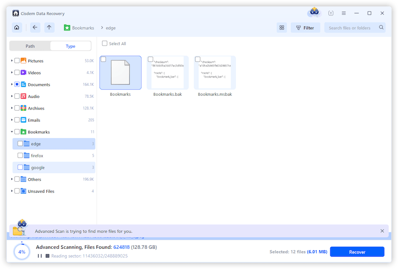Can’t find the favorites in Microsoft Edge web browser? Back in the beginning of the article, we have explained the original locations where Edge favorites are stored for Windows, macOS and Linux. If bookmarks are not found as expected, Cisdem Data Recovery would be a nice try to restore them back, no matter they are deleted, lost or merely hidden.