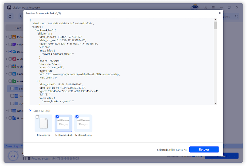 - Recover deleted and unsaved bookmark files (Edge, Chrome, Safari, Firefox...)