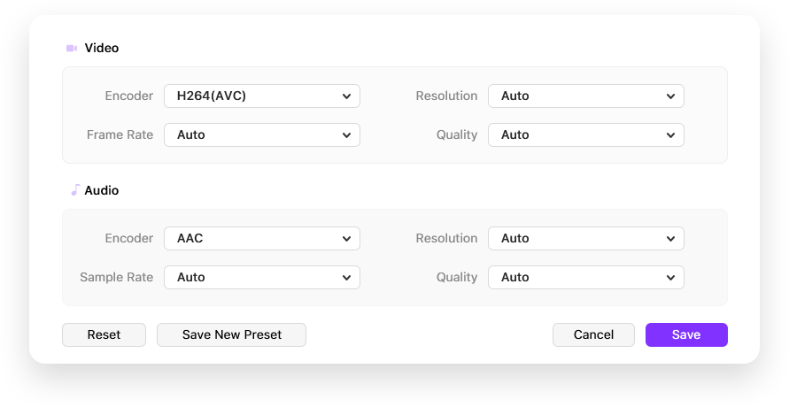 Adjust video frame rate, sample rate, channel and quality before conversion.
